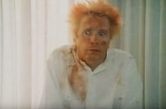 Giving credit where credit is due, the originators of this type of satirical manipulation of old film material has to be Devo. (See their 1978 film “The Men Who Make The Music”.) It is no surprise then that their VC to “It's A Beautiful World” shows maturity and clarity in what amount to an acute and perceptive handling of what Devo have loosely termed ‘mutant devo imagery': supposedly conventional images of what normal people view to be normal representations of themselves. To highlight this whole process of image manufacture, Devo's Boogie Boy stands behind a strange apparatus that projects ‘images of the world' onto his screen. The resultant collage is a heady trip through social normality underscored by cynicism. The end image of an atomic explosion stands as a complex coda to the problem of a society that is by nature self-destructive. In such a presentation (thematically continued on from all their videos) Devo show that restraint and accuracy allow them to control their images where others have fallen prey to their own excesses.