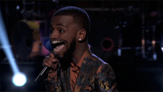 Various episodes from season 15 of the USA version of The Voice in 2018 provide the visual material for Vocalese. As per the structure of the original show's battles and rounds, the two screens feature footage of a key performance from a singer and his or her opponent, facing off each other as they unleash their awe-inspiring feats of vocal prowress. Their faces capture the requiste ticks, grimaces and gurning to signfy to fellow humans that extreme emotional heights are being musically scaled - though of course such circus-oriented displays are more like evidence of the opposite: that these performers can pull off such extreme emotive signing to collaterize their singing. The 'scrubbing' technique employed for Vocalese is employed less to corrupt the digital data of the encoding, and more to freeze, loop, and extemporize their affectations with the clinical analytic tools associated with sports action replay. The visual shuddering and quivering also adds to their jittery puppet-like physicality, trapped within the bombastic black televisual void of multi-layered/multi-perspectival camera coverage which obsessively scans their spot-lit stature, gesture and visage. Each performer accordingly has their body and face shattered into a motion-collage that brutishly enlarges their head by 30% and their mouth by 20%. At times, they seem to be breaking down into pieces due to their excessive emotional outpouring.