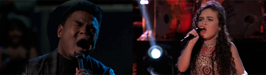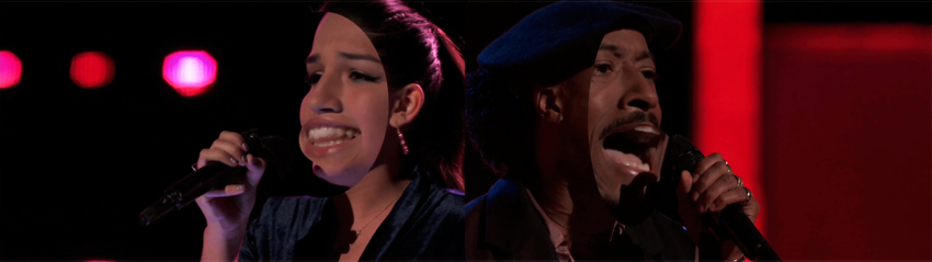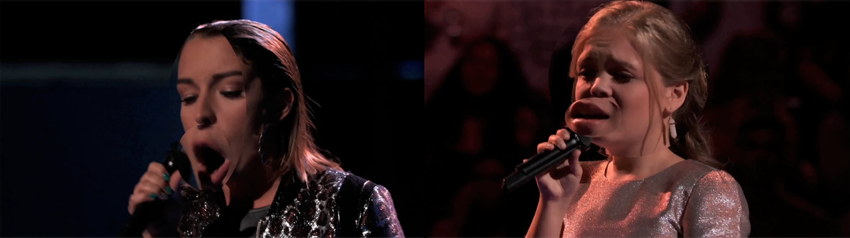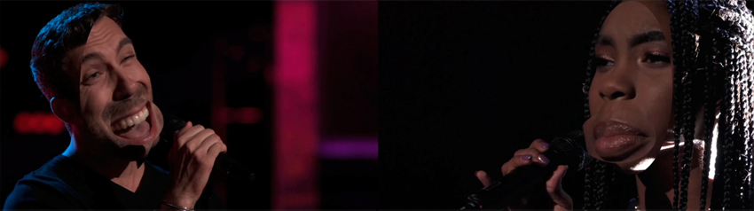 Vocalese is a 2-screen HD video suite of appropriated/modified/re-scored televised performances of competing vocalists from the US version of The Voice.